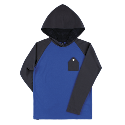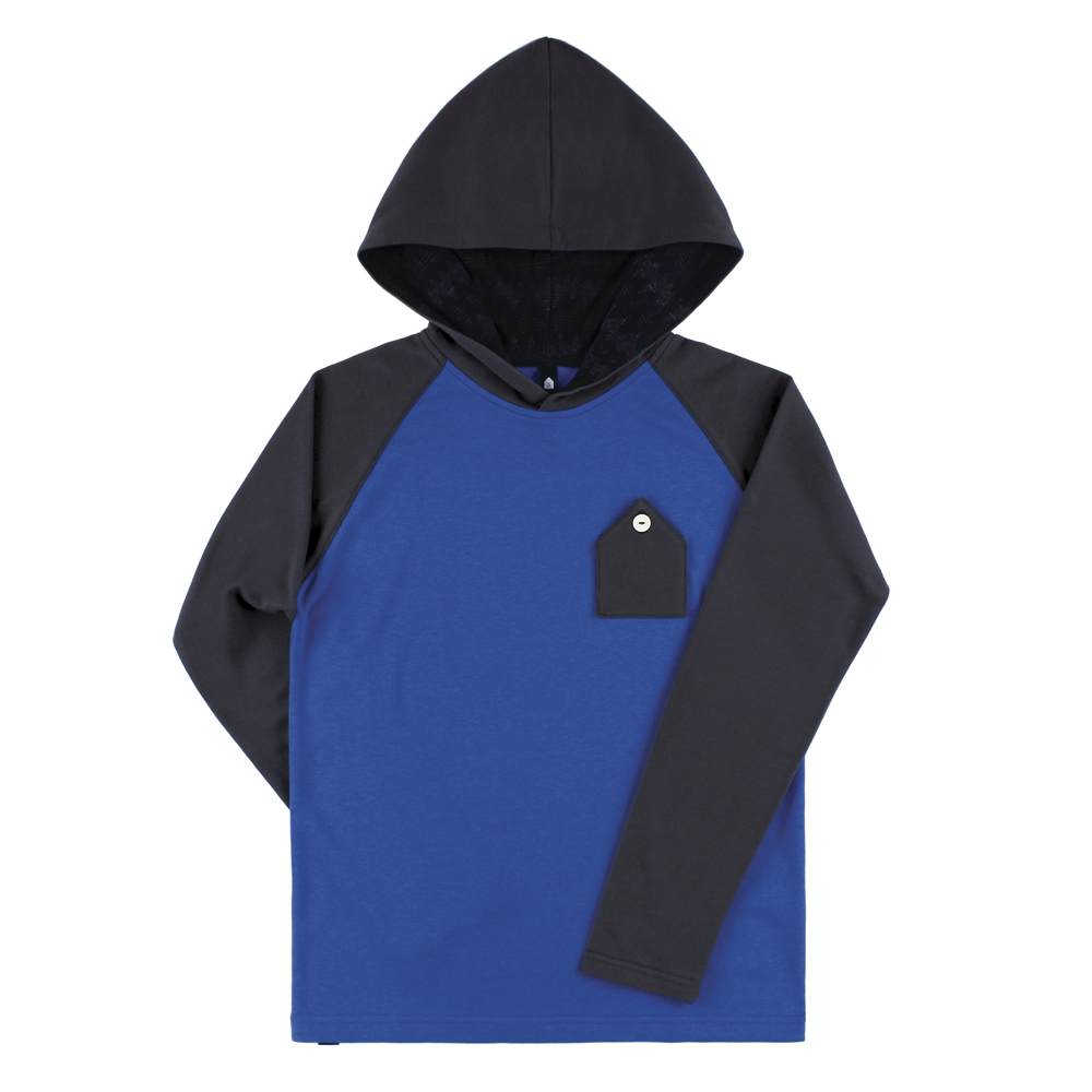 款式:長袖斜肩拼接帶帽款 售價:NT.980 尺寸: S / M / L 色彩:灰黑/寶藍款搭配款 材質:大身袖帽: 100﹪純綿/ 帽子內裏:彈性針織菱紋布