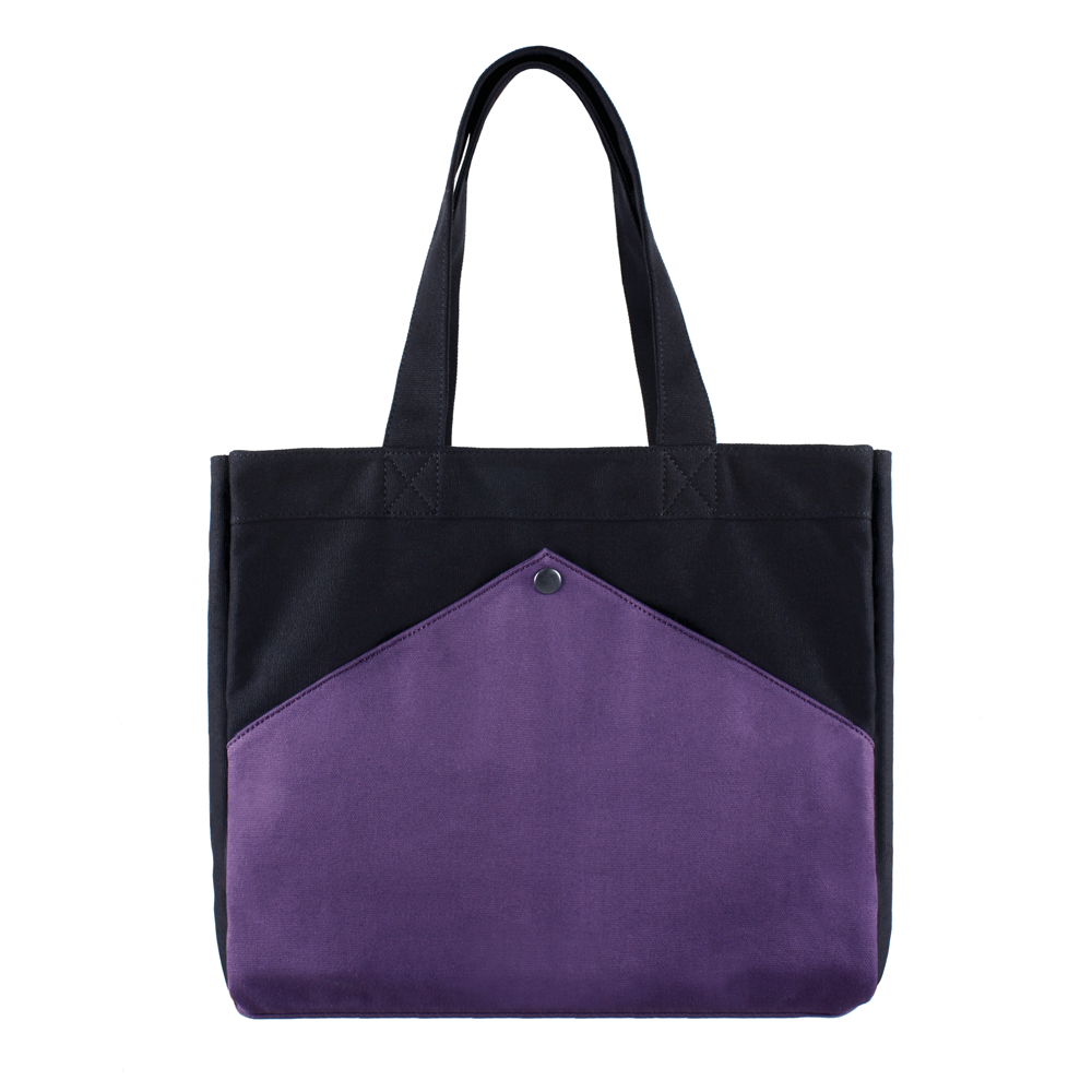 售價:NT.1680 尺寸: w42 x h35 x d10 cm / 680g 色彩:茄子紫色 材質: 12盎司及14盎司平織棉質帆布拼接 附註:兩面不同樣式:局部雙層結構,車工緊緻耐用; 外側屋型收納袋可快速收置隨身物品; 內側有開放式收納口袋及拉鍊式安全口袋